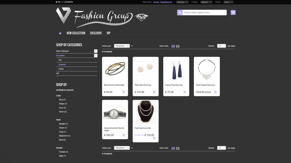 E-commerce realizzato per FashionGroup – Vendita di gioielli e accessori abbigliamento,