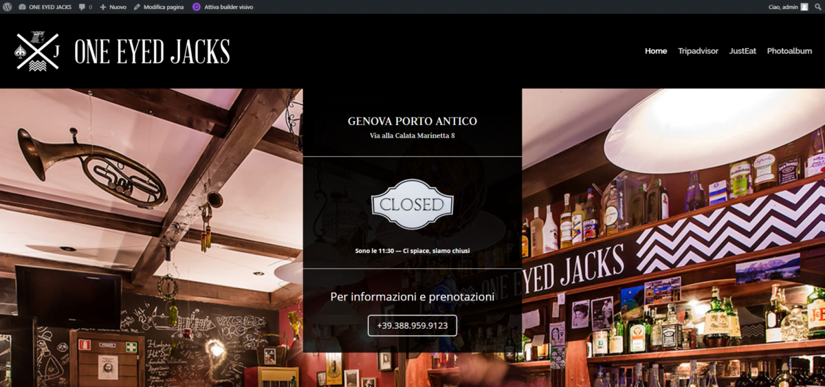 Pagina con script per la gestione degli orari di apertura in tempo reale, mappa customizzata e Photoalbum sincronizzato con l’ album della pagina facebook integrazione social network.